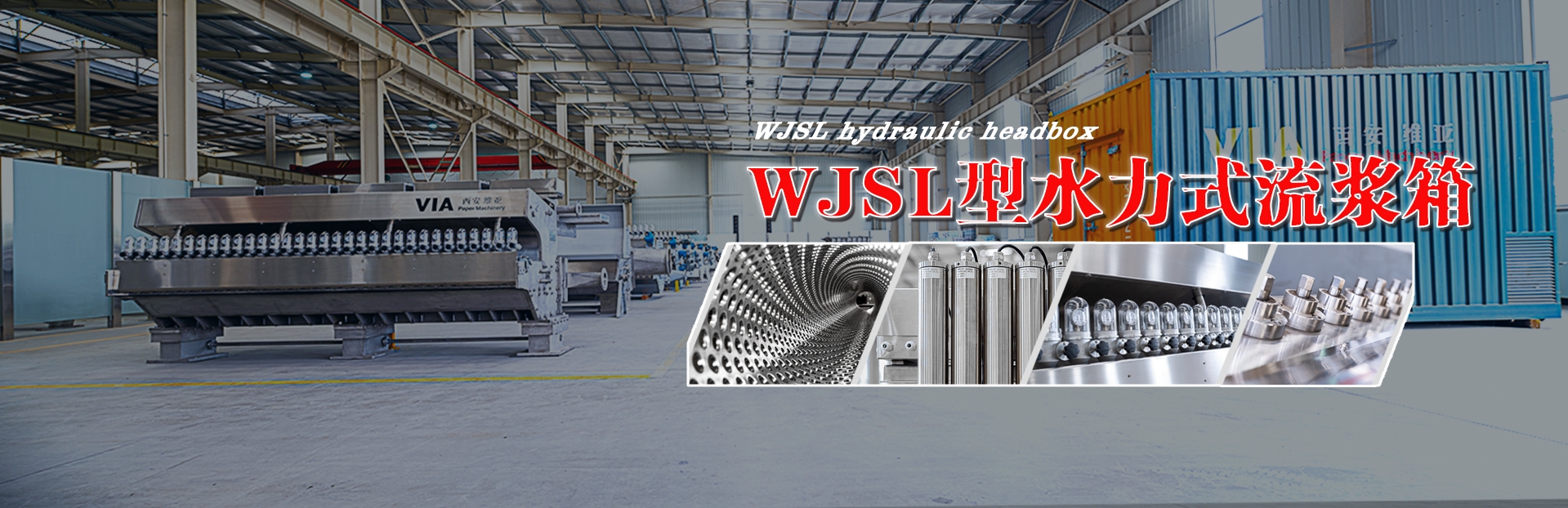 WJSL型水力式流漿箱適應(yīng)車速范圍在500-1200M/MIN。漿料經(jīng)錐形布漿總管與階梯變化的管束沿紙機寬度方向均勻布漿。稀釋水在漿料進入階梯管束前被注入到漿流中調(diào)節(jié)漿流濃度,實現(xiàn)對紙張橫向定量的局部微調(diào),改善整幅紙業(yè)橫幅定量的目的。
